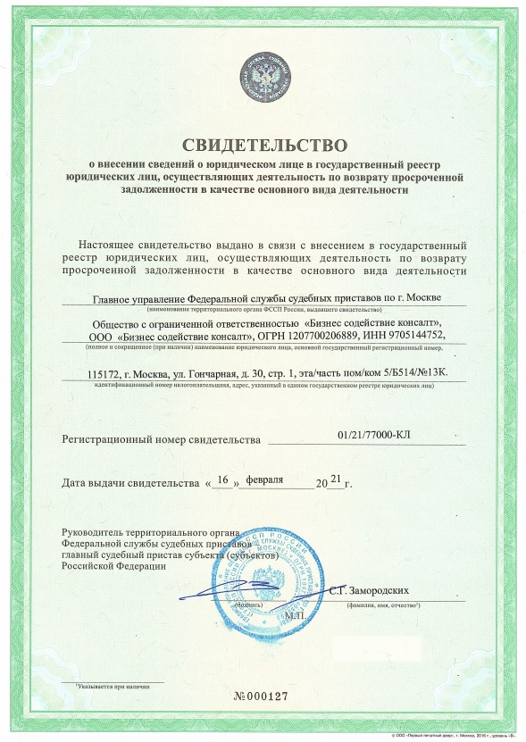 ООО ПКО "Бизнес содействие консалт" включена в реестр коллекторских компаний.
